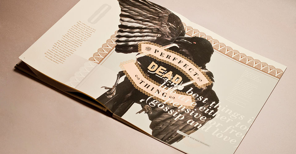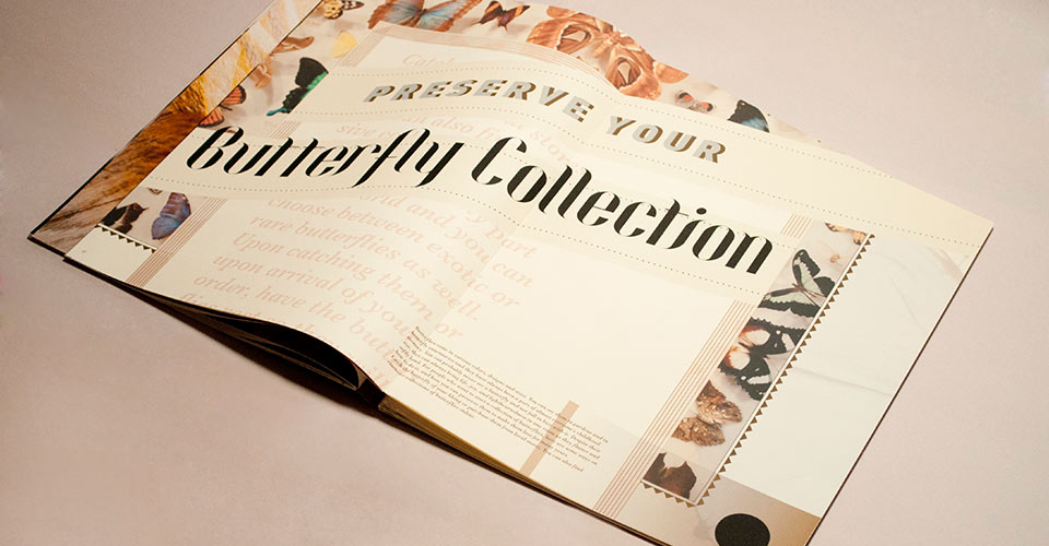 Still Alive was a publication designed specially for my publication design class. For the topic of this project I decided to pick something original and fascinating — taxidermy. In the end the magazine focused on preservation of either animal, insect or plant tissues. The goal of this publication was to make the reader appreciate the art of taxidermy and preservation. At first I thought that this project would be more gruesome; however, after researching I came to the conclusion that taxidermy is a great art that requires great skills.